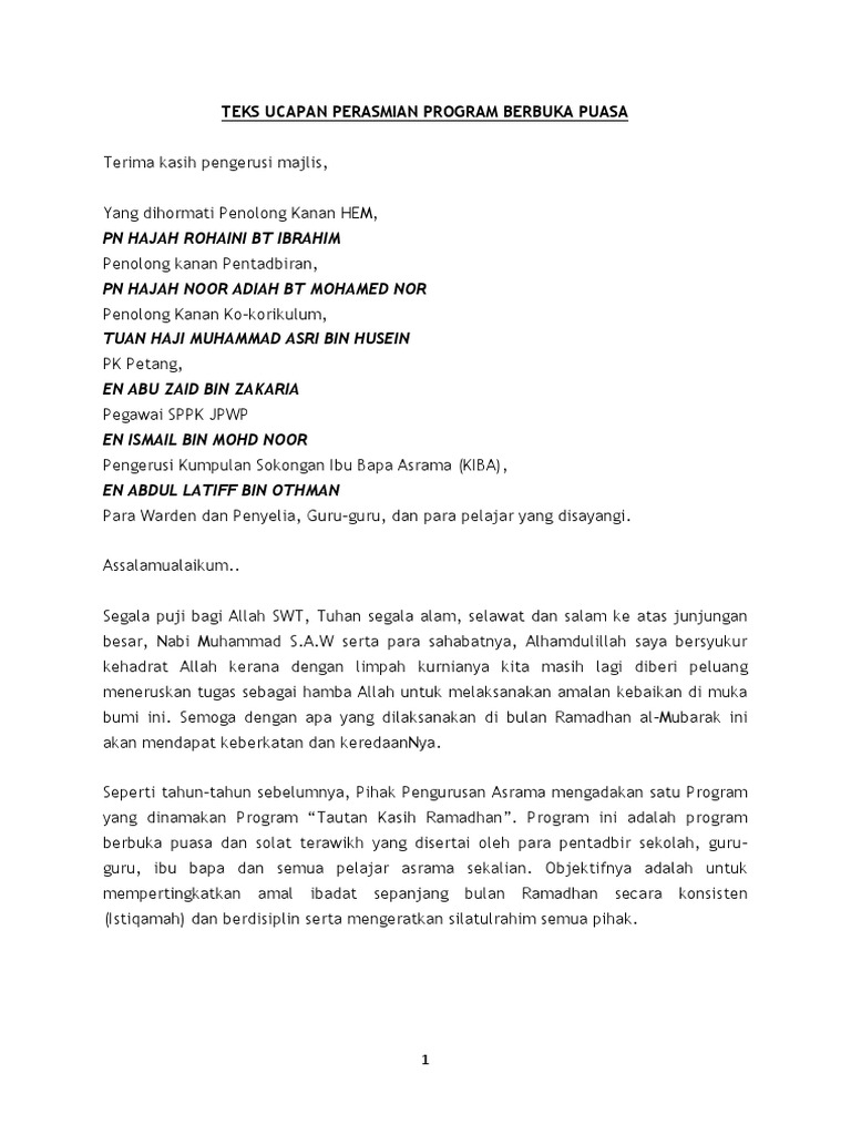 Teks Ucapan Majlis Berbuka Puasa Html