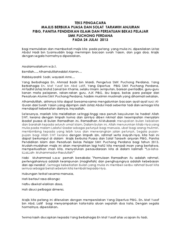 Semuanya bermula setelah kita meninggalkan alam persekolahan alam latihan yang. Teks pengacaraan bulan ramadan ramadan karem iftar jamaie berbuka puasa ramadhan ucapan pengerusi sekolah sabah majlis perasmian. 19 tahun bukanlah jangkamasa yang pendek semua daripada kita tentu bersetuju bahawa terlalu banyak perkara telah berlaku dalam kehidupan kita sebagai seorang insan.
